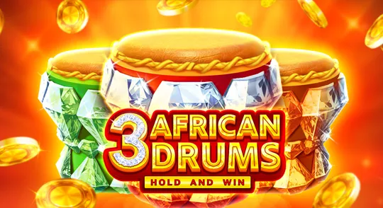This vibrant game showcases traditional African drums with colorful, tribal artwork. The gameplay involves spinning to match drum symbols, with hold and win features to increase winning opportunities.